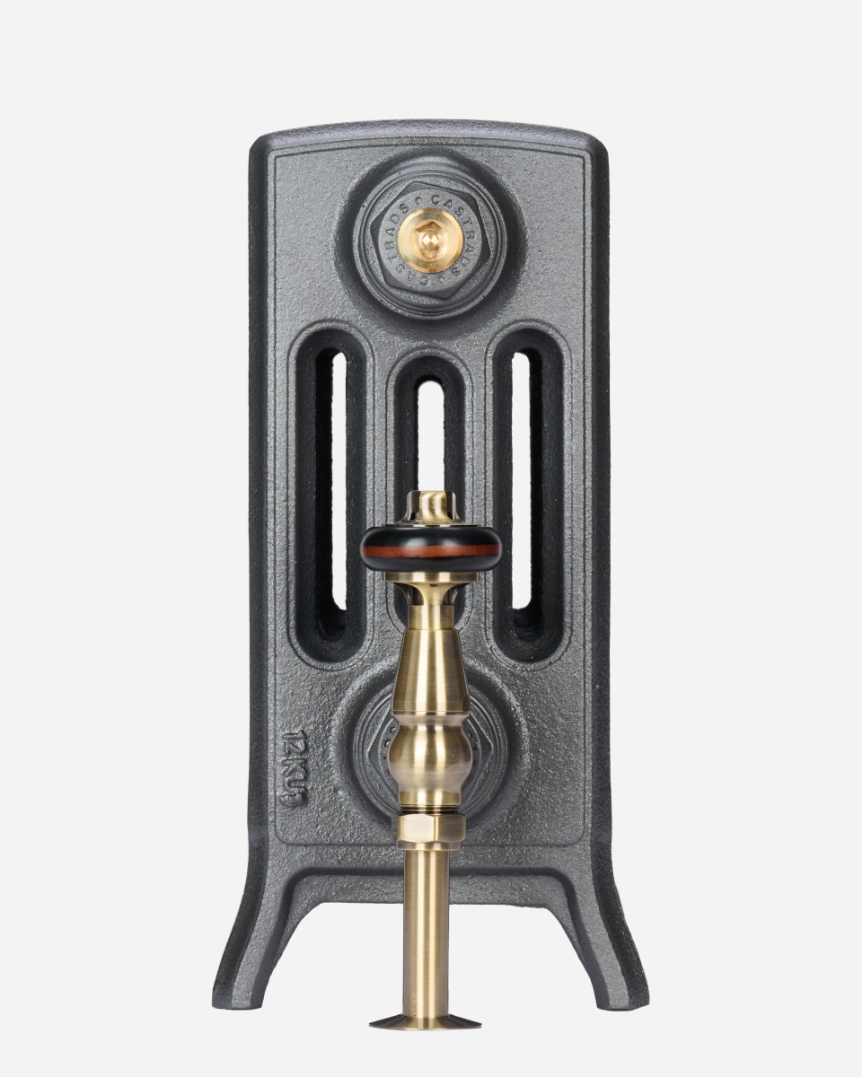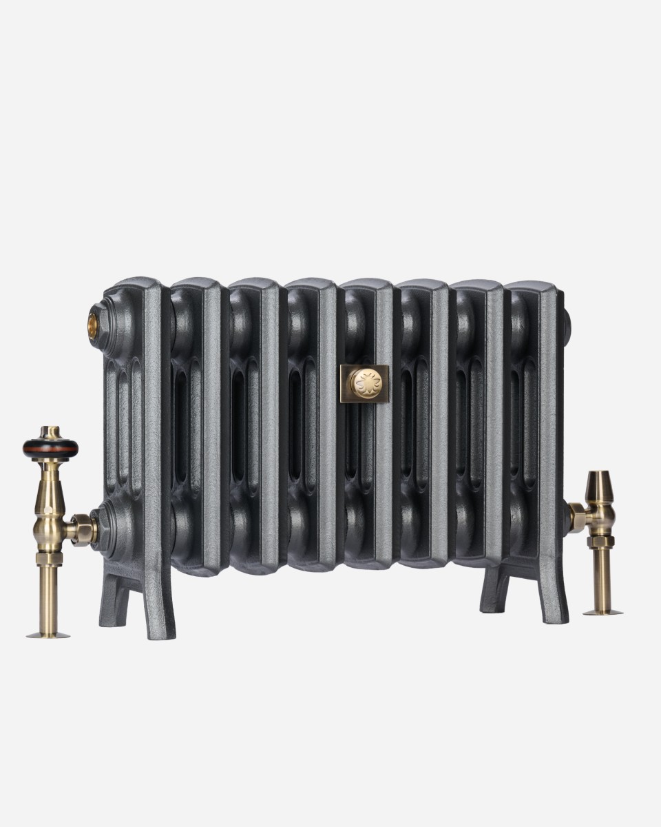 A classic column-style cast iron radiator with a softly curved top and flared legs.