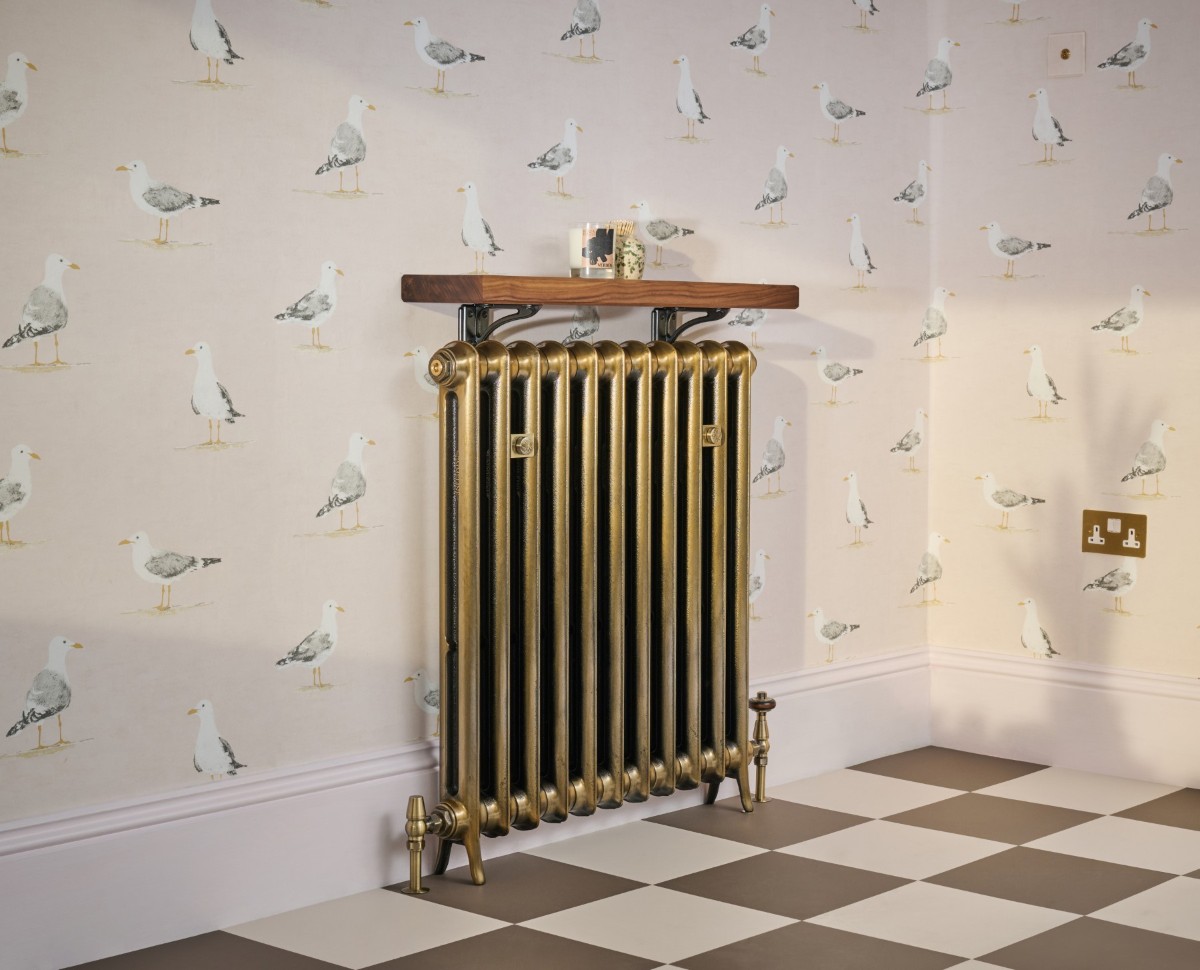 The radiator is hand polished to a high sheen, revealing the cast iron’s naturally pitted surface.